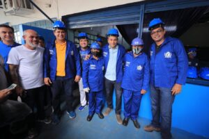 No Galpão das Artes Mestre Jair Mendes, onde são construídas as alegorias do Caprichoso, o boi das cores azul e branca, o governador foi recebido pelo presidente Jender Lobato. “A segurança do trabalho é muito importante. É necessário que a gente use todos os dias o nosso EPI para a nossa segurança e para mostrar um festival mais organizado”, ressaltou Arthur Santana, escultor e pintor do Caprichoso.