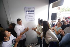 O governador Wilson Lima inaugurou, nesta quarta-feira (08/06), mais uma unidade do restaurante popular Prato Cheio, desta vez na comunidade Riacho Doce, bairro Cidade Nova, zona norte de Manaus. Destinada ao atendimento da população em situação de vulnerabilidade social e insegurança alimentar e nutricional, a unidade terá capacidade para servir 400 refeições por dia, e vai funcionar de segunda a sexta-feira.