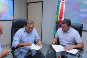 O governador Wilson Lima assinou, nesta segunda-feira (11/04), um convênio com a Prefeitura de Novo Aripuanã (a 227 quilômetros da capital) para a recuperação do sistema viário da sede do município. O valor do convênio, assinado com o prefeito Jocione Souza, é de R$ 11,2 milhões, sendo R$ 10,9 milhões do Estado e R$ 296,6 mil de contrapartida municipal. Serão contemplados os bairros Centro, Raizão, TV, Geraldo Colares, São Pedro e Bolívia.